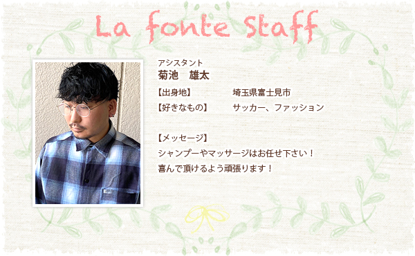 さいたま市土呂駅近くにあり、大宮からも近い美容室La Fonte(ラ・フォンテ)。他県からアイラッシュのクチコミでこられるお客様も多く、新しい自分を発見したい方に、ぴったりのお店です。美容師の求人を募集しております。